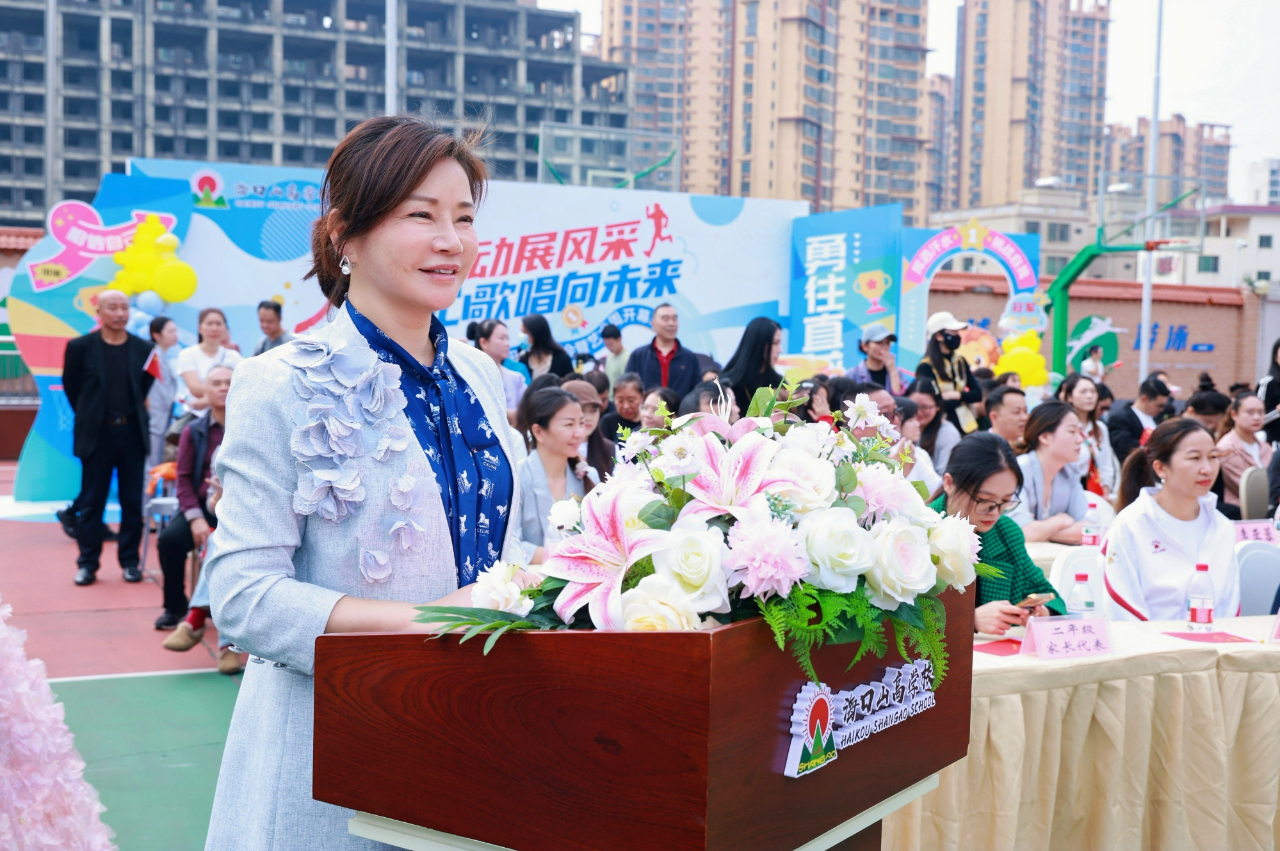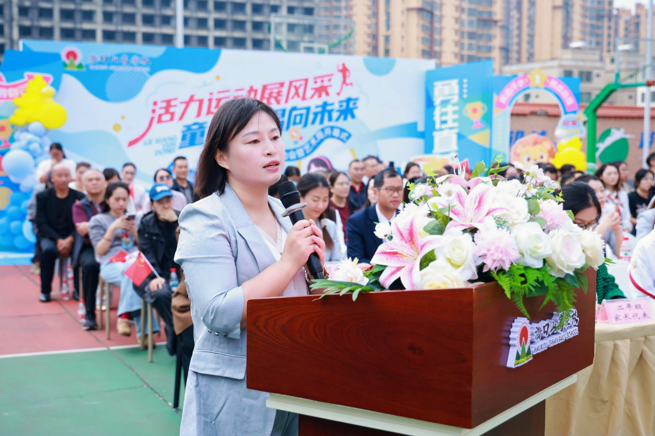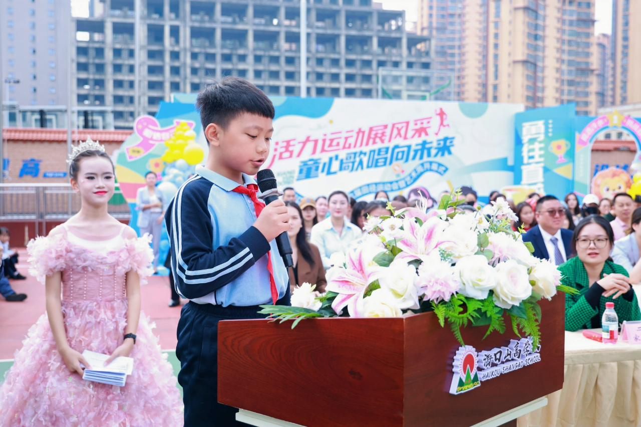 海口山高教育集团执行董事长洪显平女士宣布本届运动会暨艺术周开幕,全场掌声雷动,师生家长们无不兴奋喝彩。