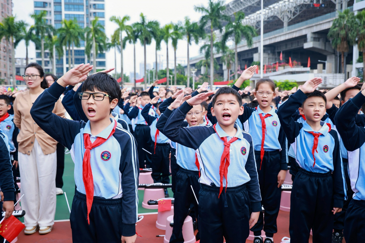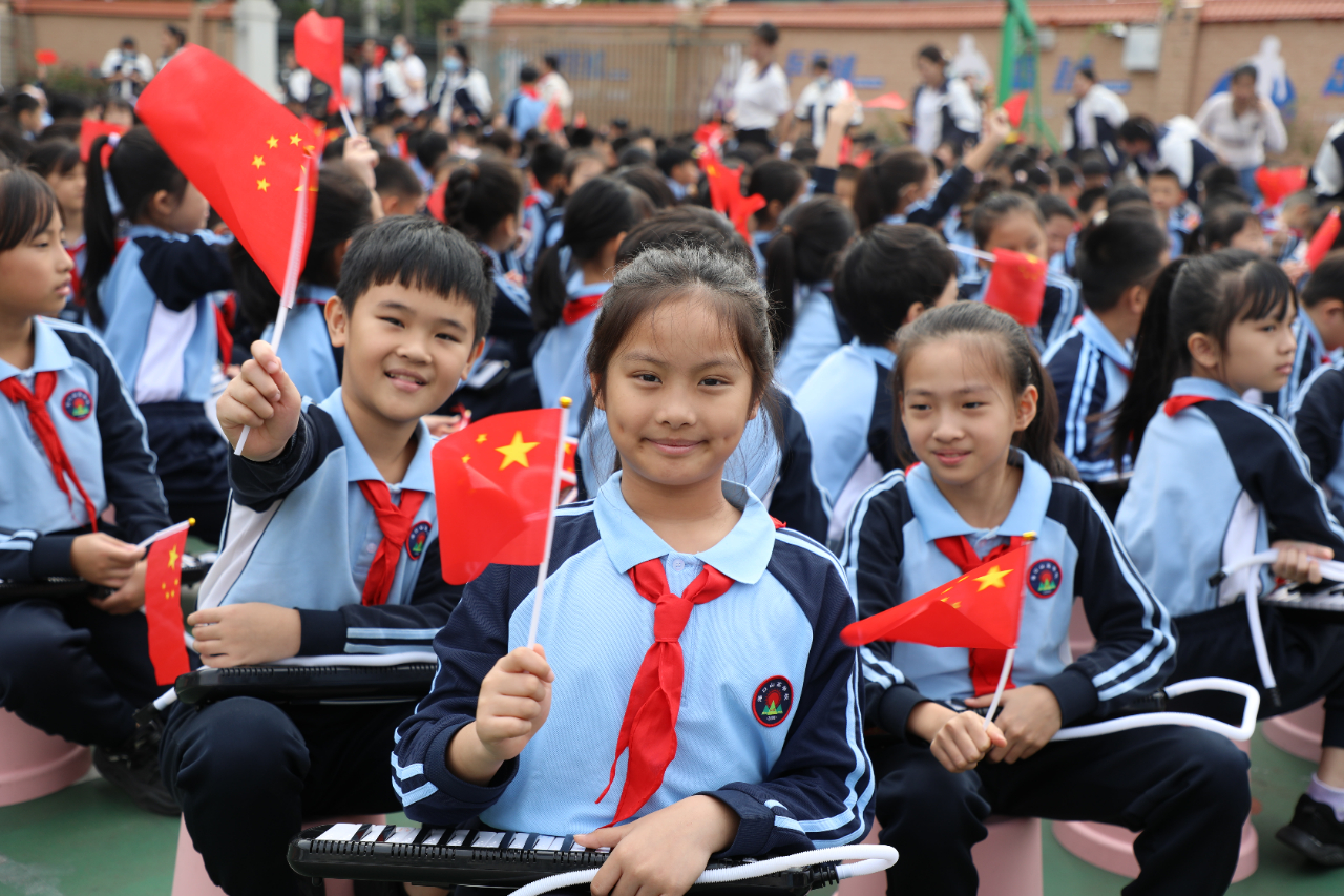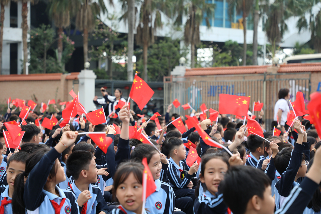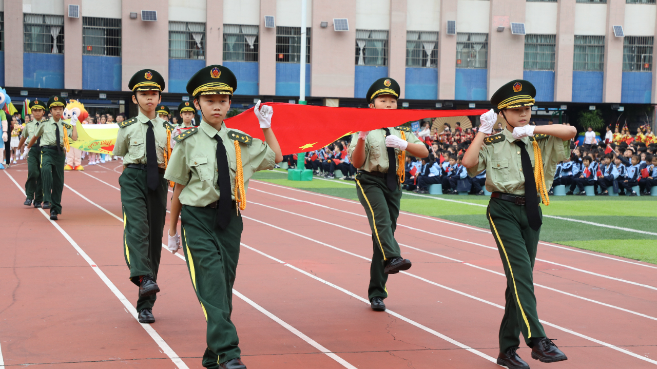 护旗队擎旗稳步前行,展少年担当,扬爱国豪情。