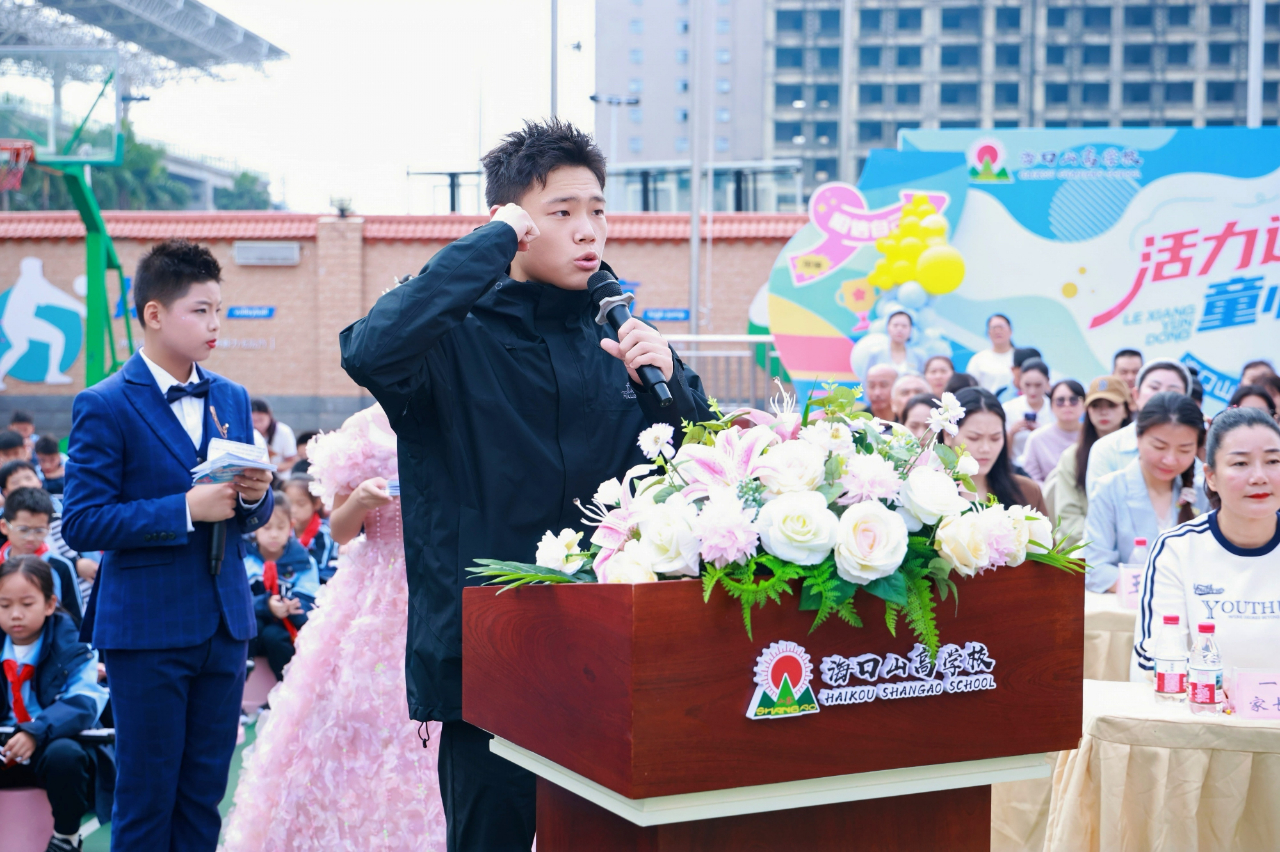 出席本次开幕式的领导有:海口山高教育集团执行董事长洪显平女士,海口山高学校党支部副书记 副校长李涛先生、副校长向以慧女士、孙娟女士、吴雨根先生,大队辅导员李亚蓉女士,以及各学部年级校长和各年级家长代表。