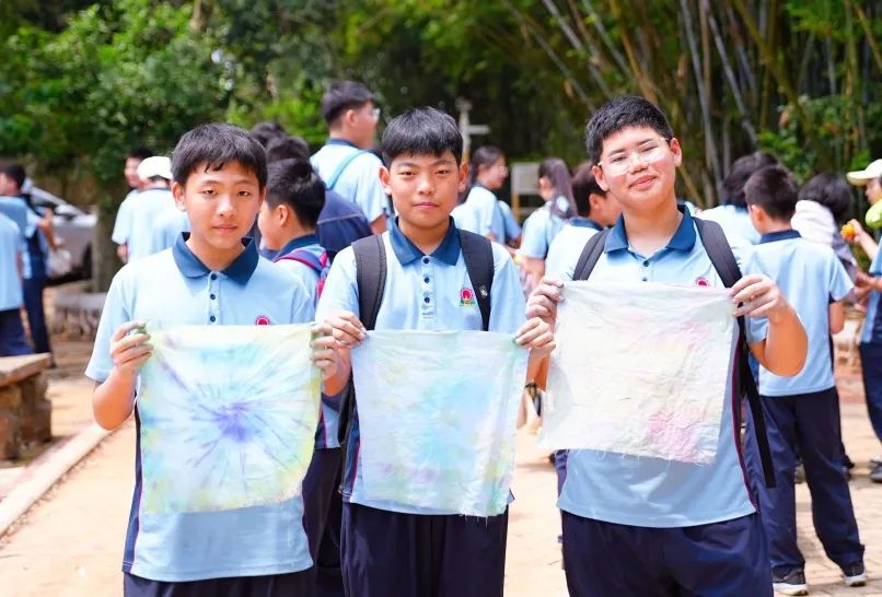 同学们还亲手体验扎结、浸染的神奇过程,用天然染料创作独一无二的纹样,感受“机械无法复刻”的艺术之美!